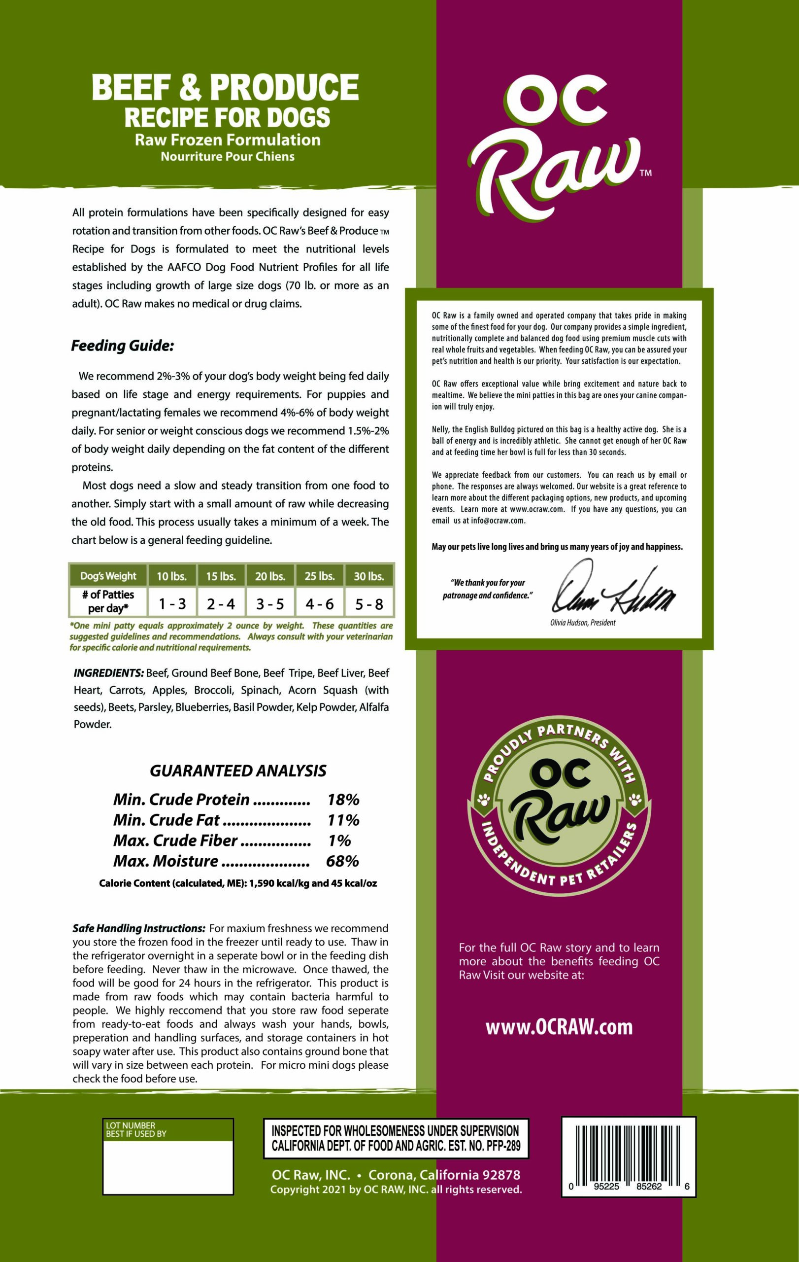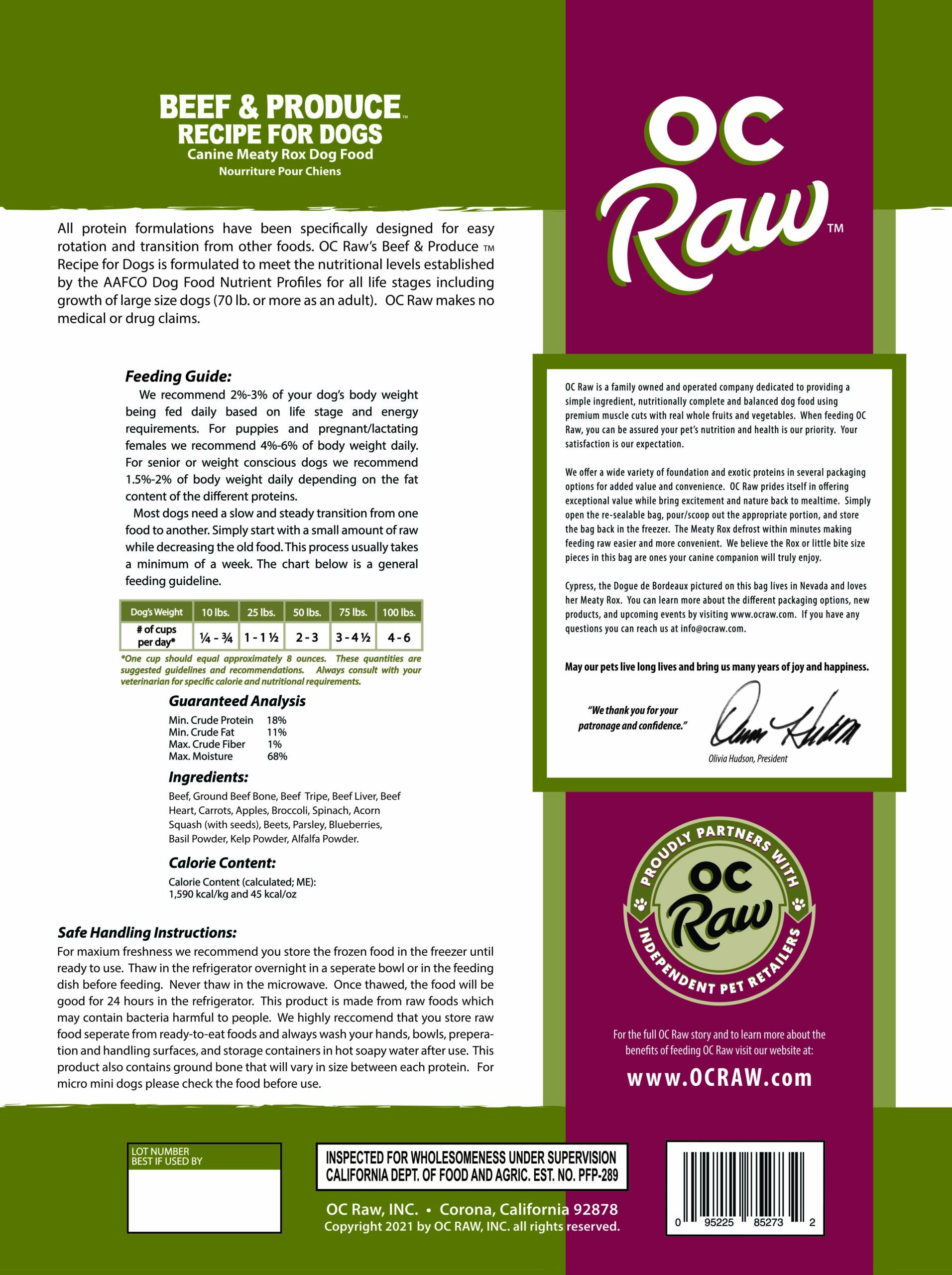 USA grown raised and processed meat without added hormones and antibiotics. Mainly sourced from Midwest Farms. Our beef formula has similar calories to the Turkey and offers a more cost effective product with a slightly higher fat content. Purpose: foundation daily feeding.