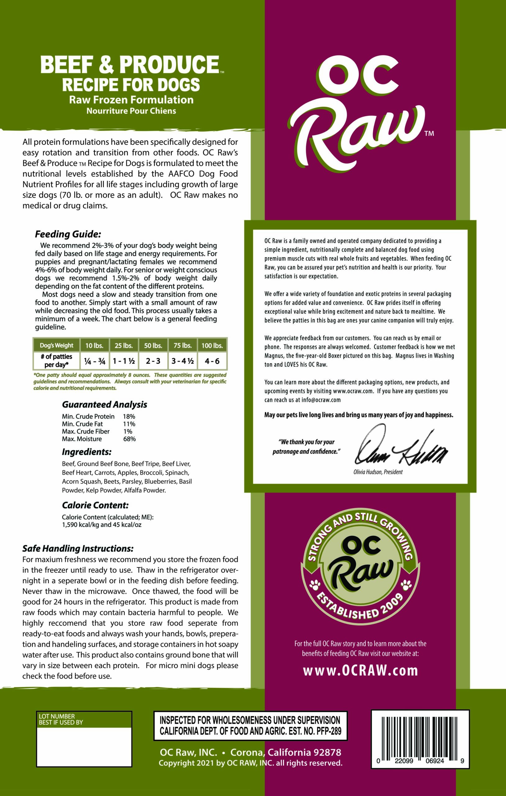 Transitioning to a new food varies from pet to pet. What works for one may not work for another. Those with hearty digestive systems can transition quicker, even cold turkey without any significant side effects. While other dogs benefit and may require a slow, steady transition ranging from a few days to several weeks. Simply start with a small amount of OC Raw to your current food and every day or every few days increase the amount of OC Raw while decreasing the old food.