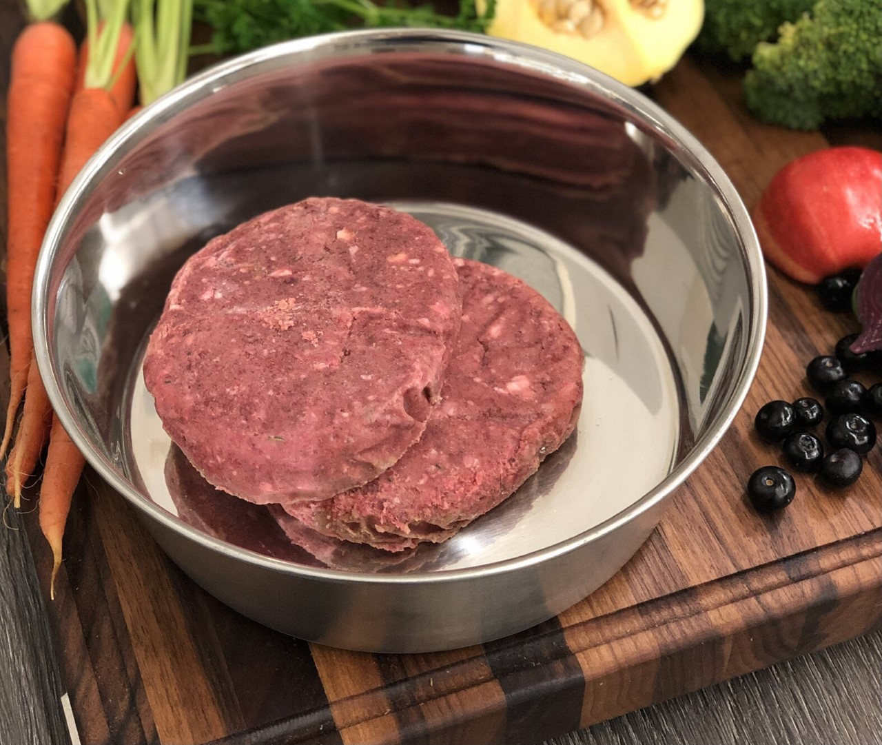 For maximum freshness we recommend you always store this product in the freezer until ready to use. Bulk patties will thaw relatively quickly. Not as fast as the Meaty Rox but should be thawed in the refrigerator NEVER in the microwave. Once thawed the food will be good for 1-2 days when stored in the refrigerator. This product is made from raw meat and animal ingredients and raw fruits and veggies intended for human consumption and may contain bacteria harmful to people. We highly recommend you store this product separate from ready to eat foods and always wash your hands, bowls, and handling surfaces with hot soapy water after use. This product also contains ground bone which can vary in size from batch to batch. The use of stainless-steel bowls is recommended over plastic products.