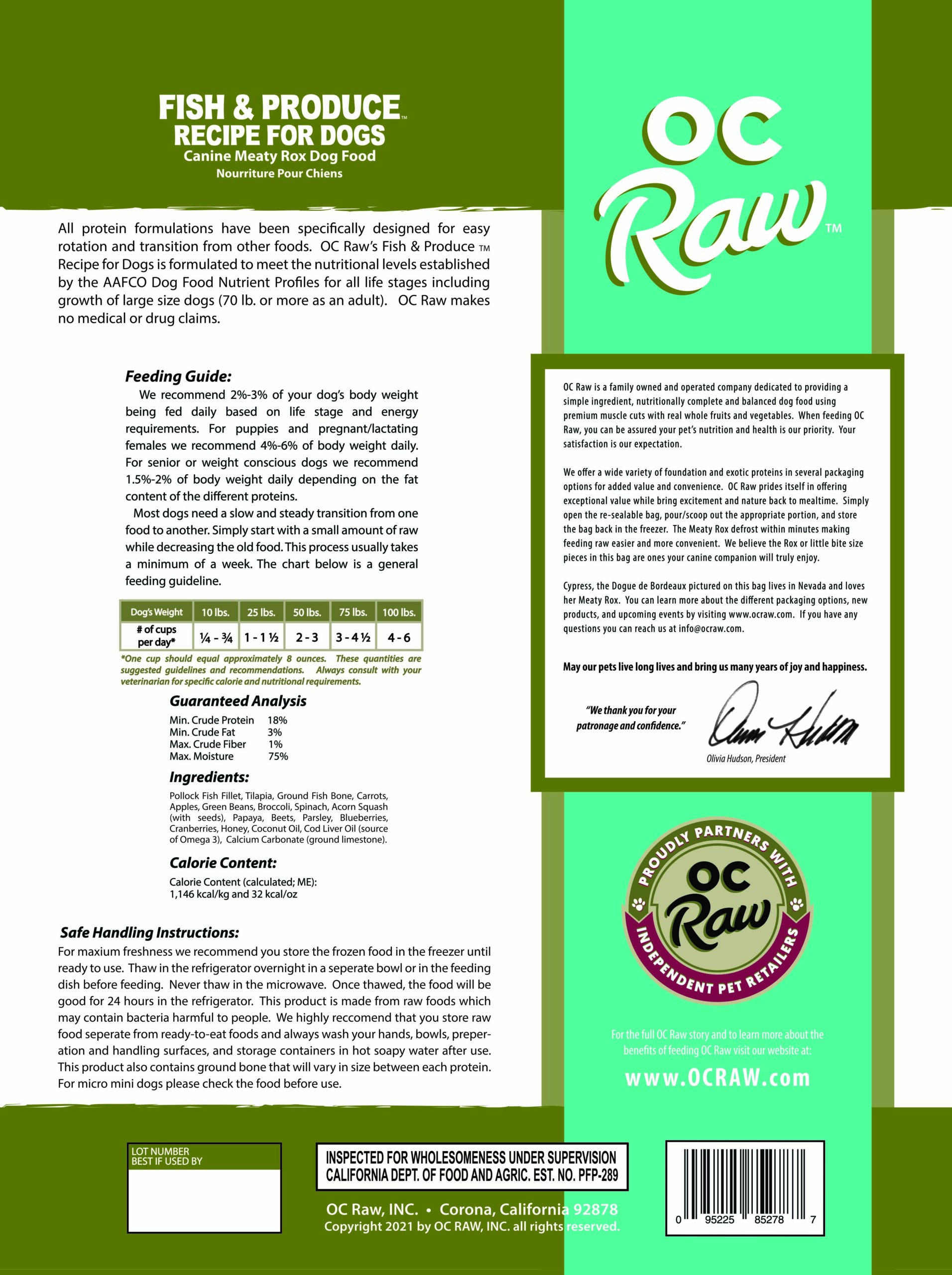 Transitioning to a new food varies from pet to pet. What works for one may not work for another. Those with hearty digestive systems can transition quicker, even cold turkey without any significant side effects. While other dogs benefit and may require a slow, steady transition ranging from a few days to several weeks. Simply start with a small amount of OC Raw to your current food and every day or every few days increase the amount of OC Raw while decreasing the old food.
