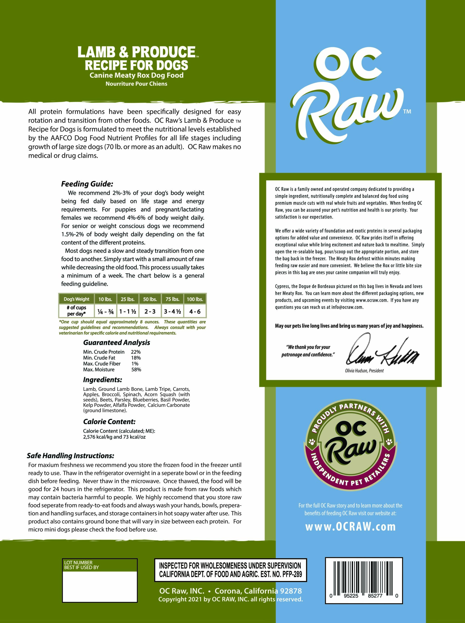 Sustainably sourced from farms in Australia and New Zealand. Our lamb recipe is the highest is protein (22%) and fat content (18%) which serves as our weight gainer formula. Puts healthy weight on faster than other formulations. Purpose: healthy weight gainer for dog who experience muscle atrophy, working dogs who need high calorie content without volume, and pre and post natal whelping dogs.