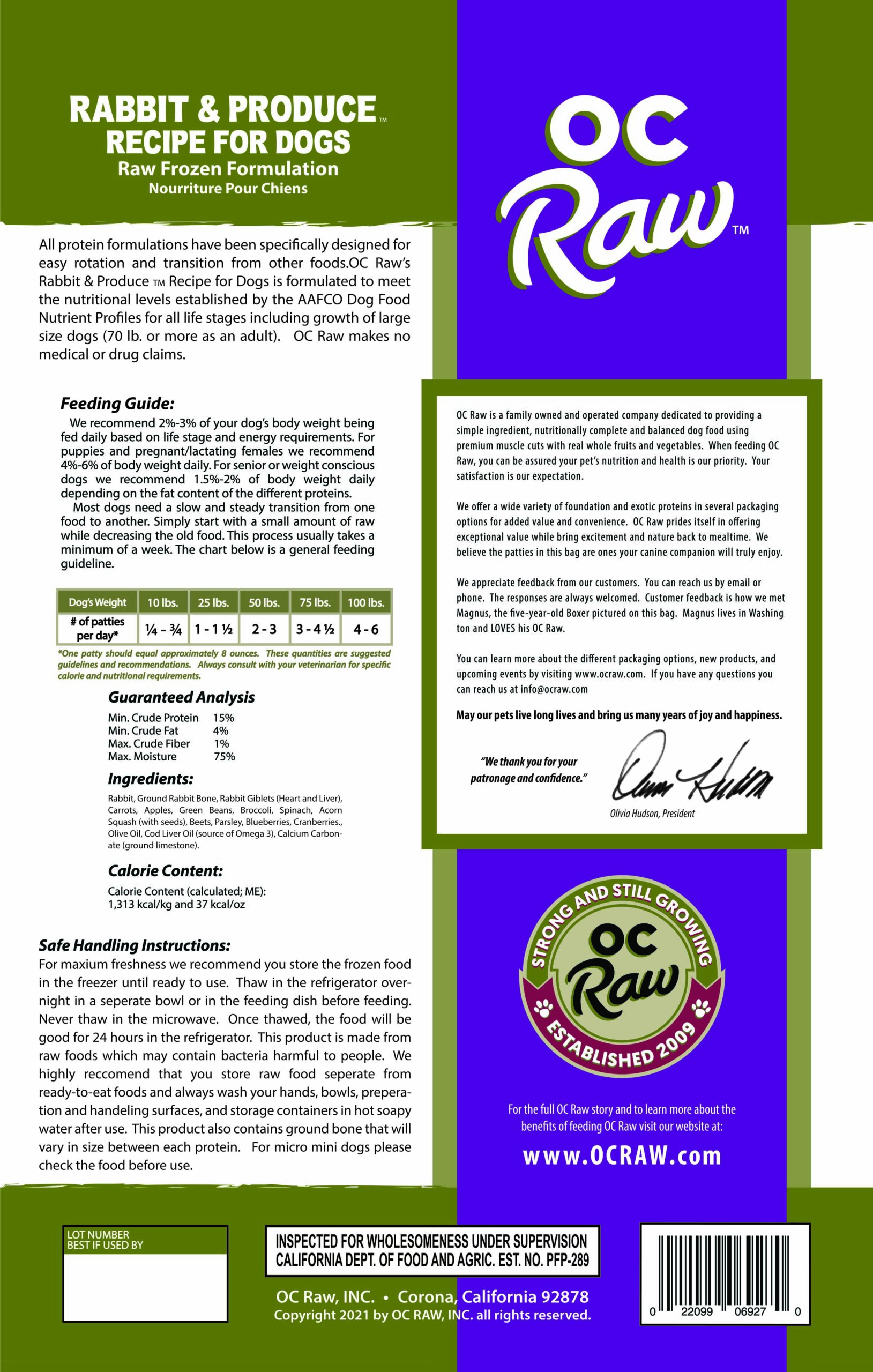 | Rabbit | Ground Rabbit Bone | Rabbit Giblets | Carrots |