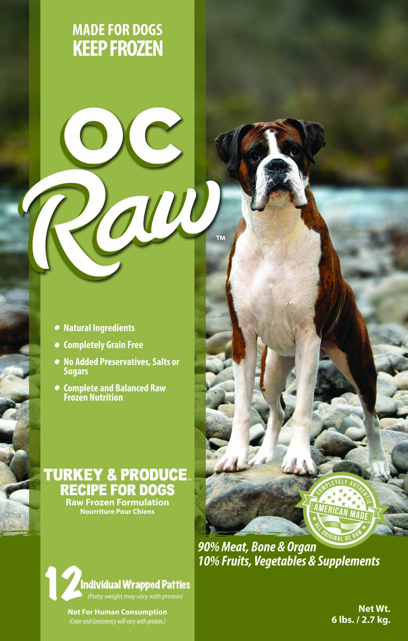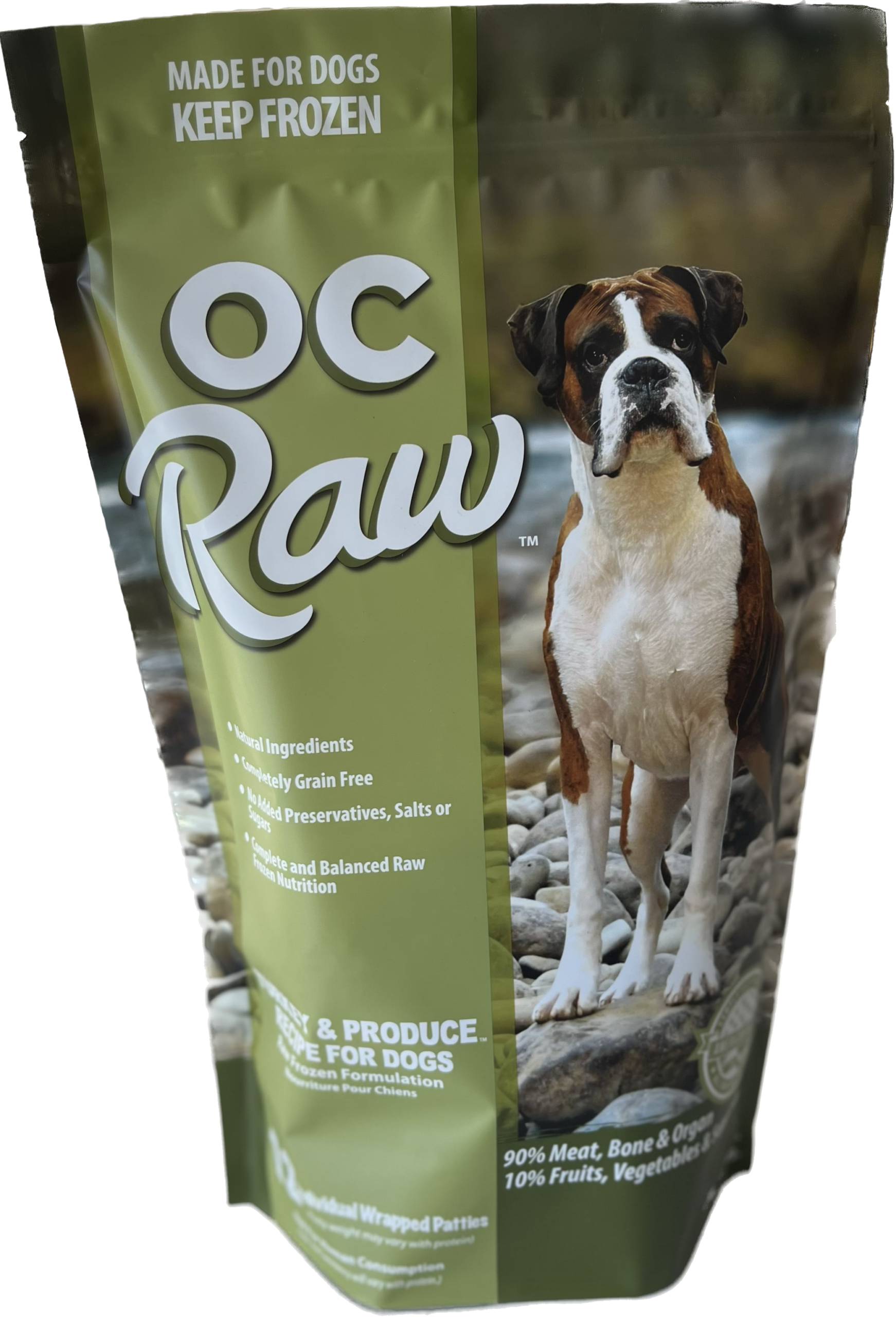 • 90% Meat, Bone, and Organ 10% Fruits, Vegetables and Supplements
